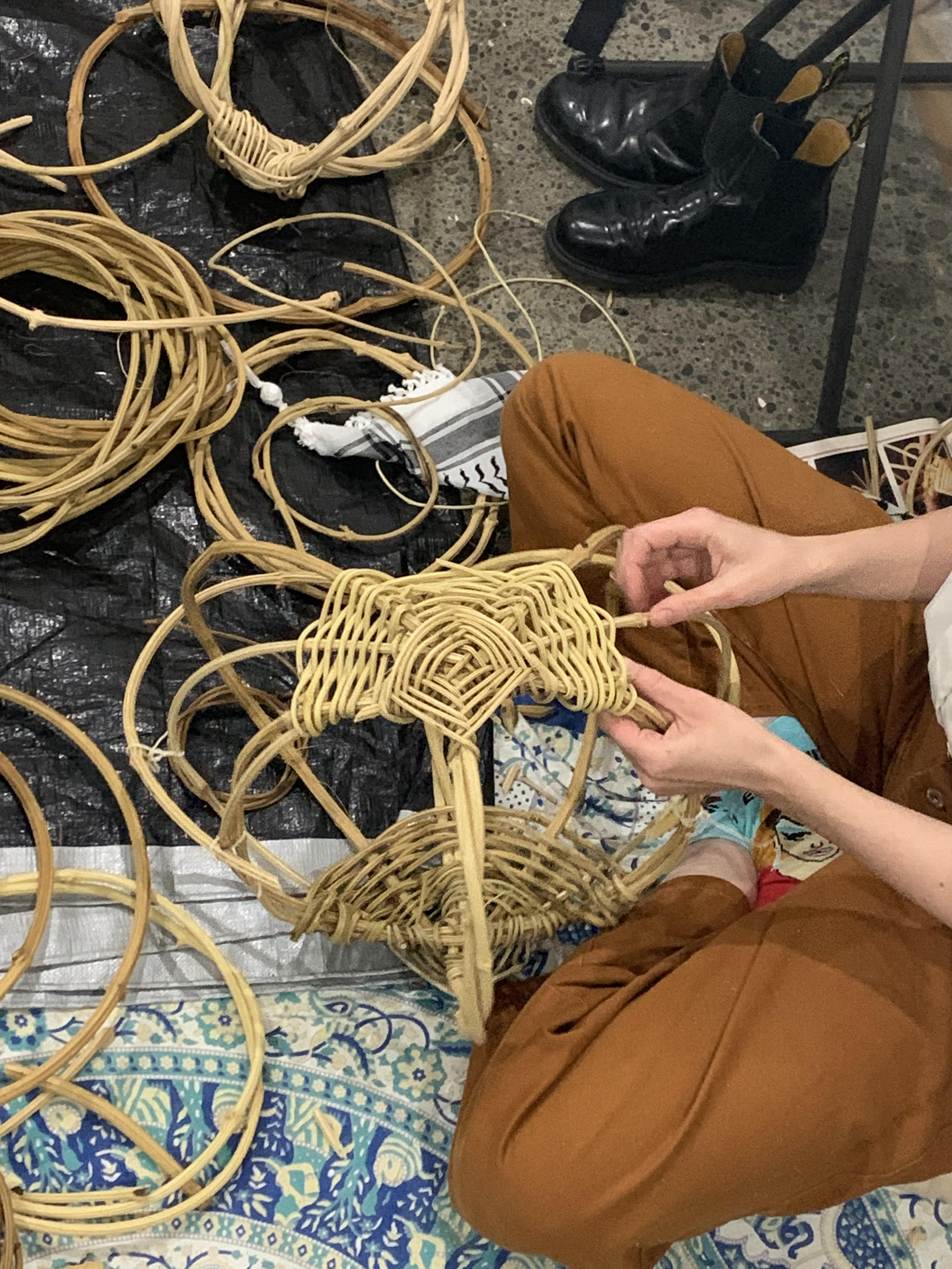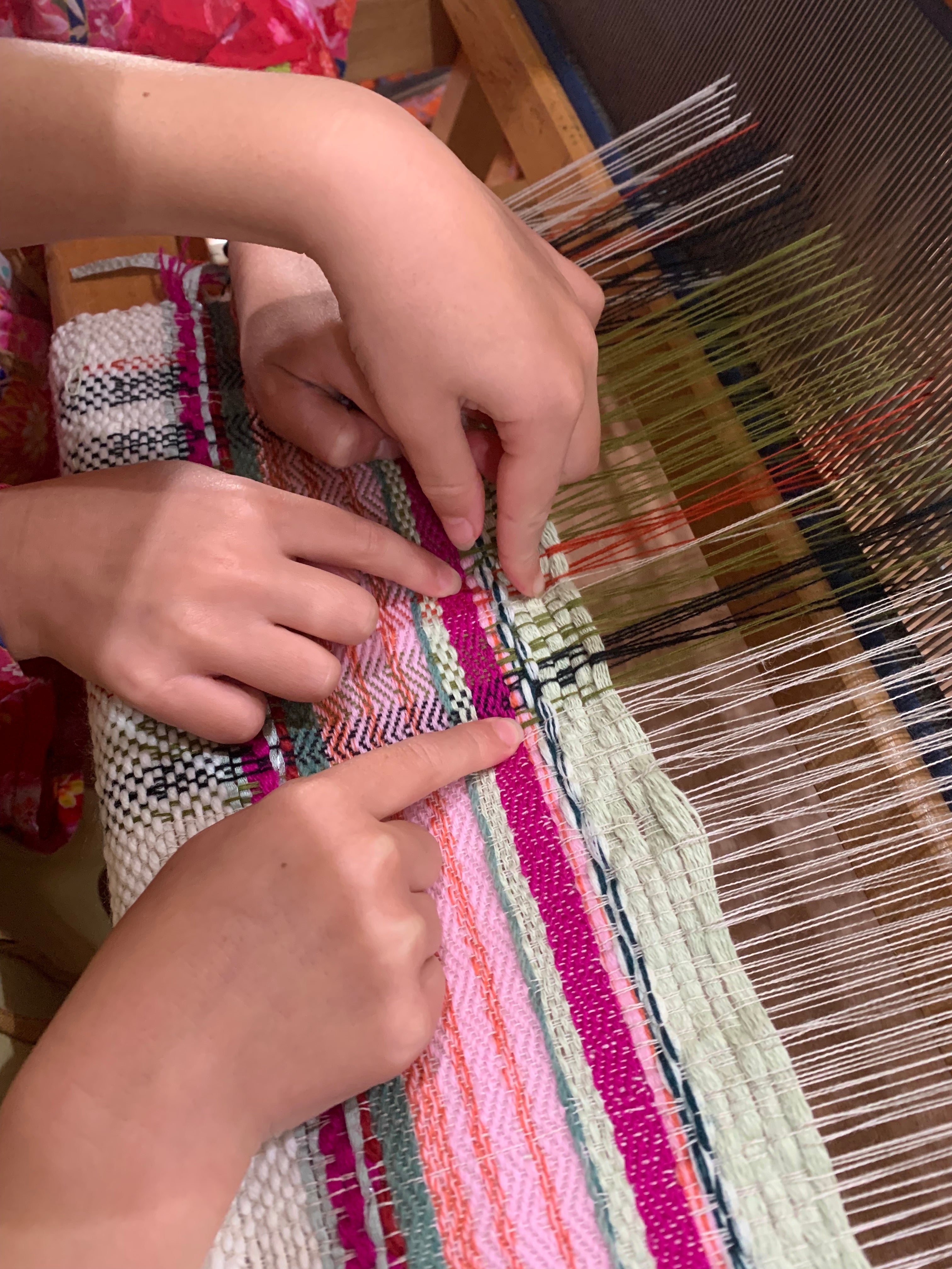 The Mill began in the mind of Genevieve, and flourished in the supporting hands of Urban Dream Brokerage. Having completed a Master of Textile Design at Massey University, Genevieve had a burning passion to share her knowledge with the community of Te Whanganui-a-Tara. Initially the idea was for an 8-shaft table loom to be set up on its own in a small space, offering an invitation to learn how simple weaving could be, to anyone who took up the task. After reaching out to other local weavers, a group of six textile artists and community space holders came together around the loom. Each brought their own area of expertise and passion to the Micro Mill. What followed was two months of connection, learning, ideation, and creation, as a community.